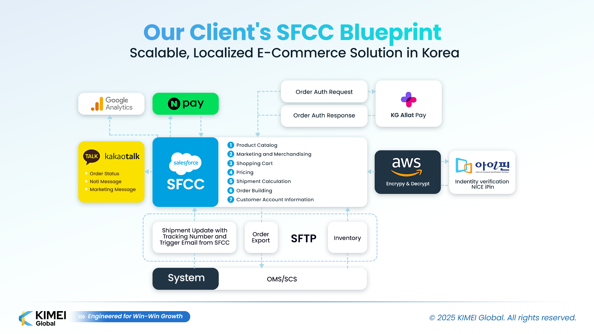 - Streamlining Seamless System Integration: Connect the SFCC platform efficiently with Korea-specific payment gateways, logistics providers, and inventory systems to ensure smooth, real-time operations.